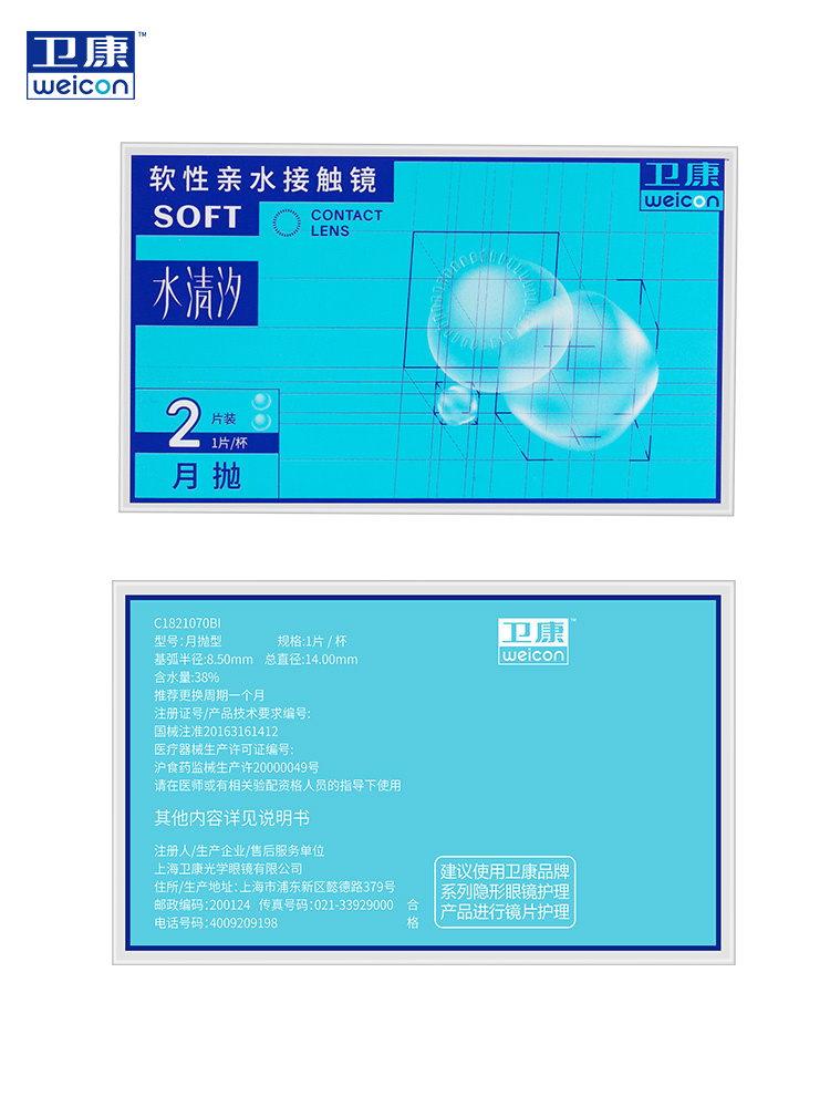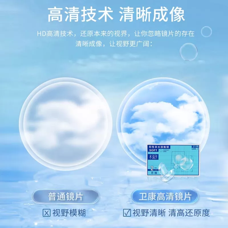 卫康近视隐形眼镜月抛2片盒透明高清水凝胶官网正品旗舰店