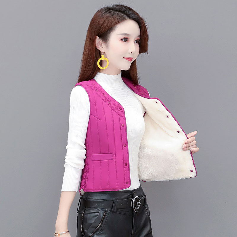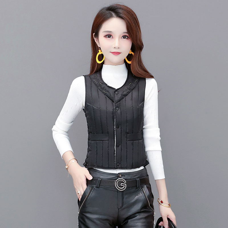 秋冬加厚加绒棉衣内胆马甲女短款保暖羽绒棉背心打底大码马夹坎夹