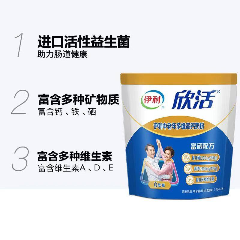 伊利欣活中老年多维高钙奶粉400g*1袋装成人营养富硒配方独立包装