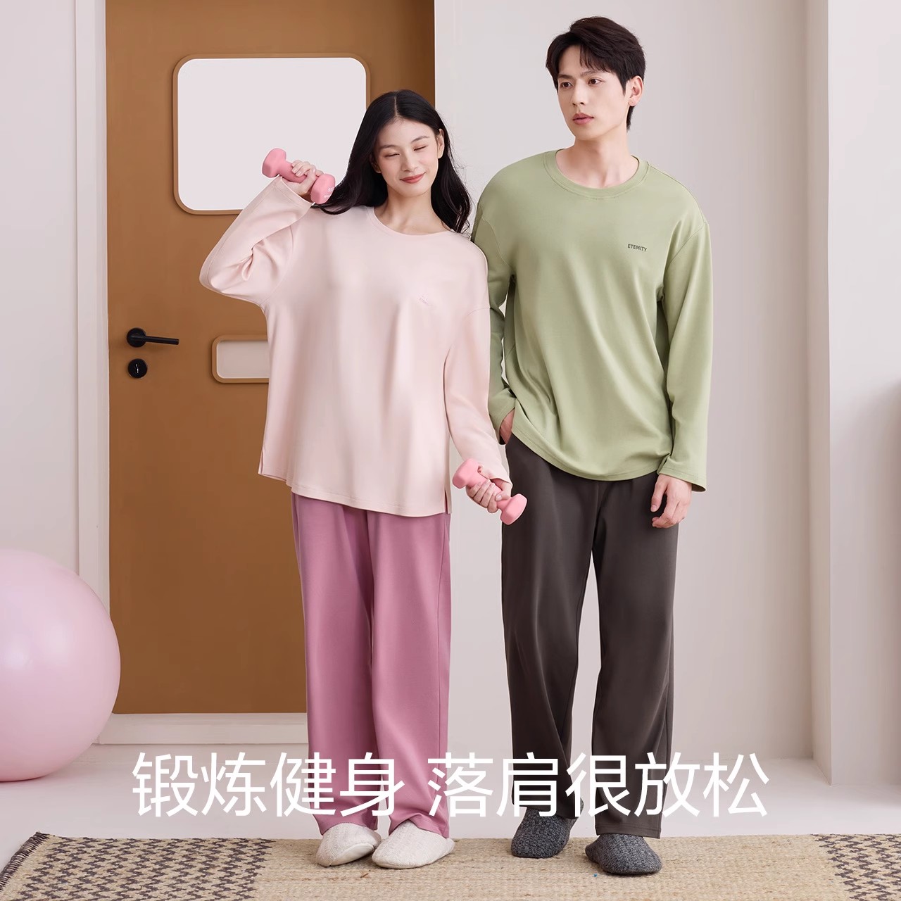 红豆女士纯棉睡衣男长袖休闲套头可外穿抗菌防螨情侣家居服套装秋