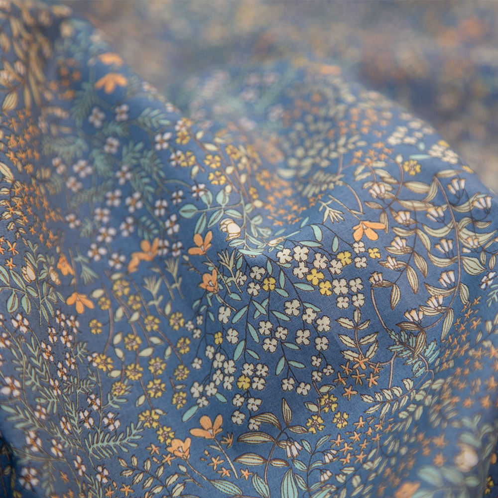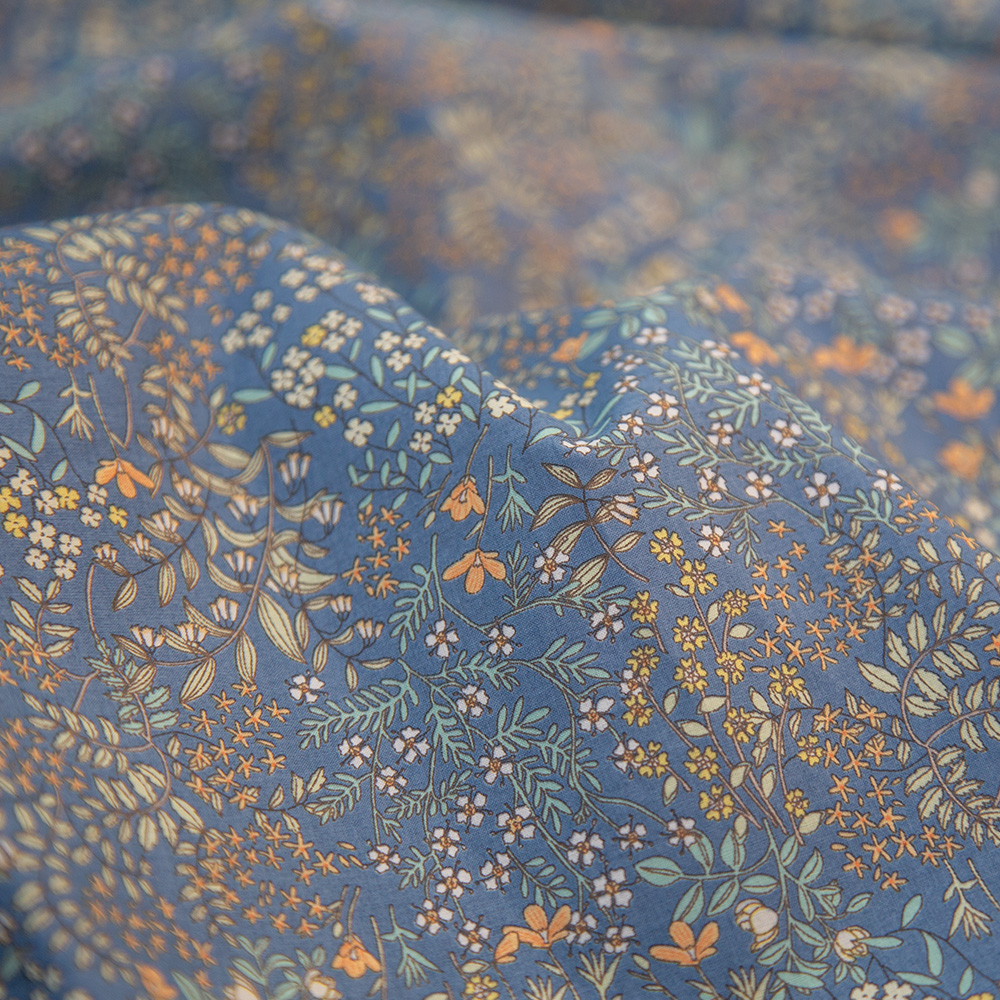 日本进口HOKKOH80支精梳纯棉高档服装连衣裙衬衣手工布面料繁花蓝