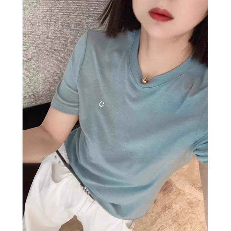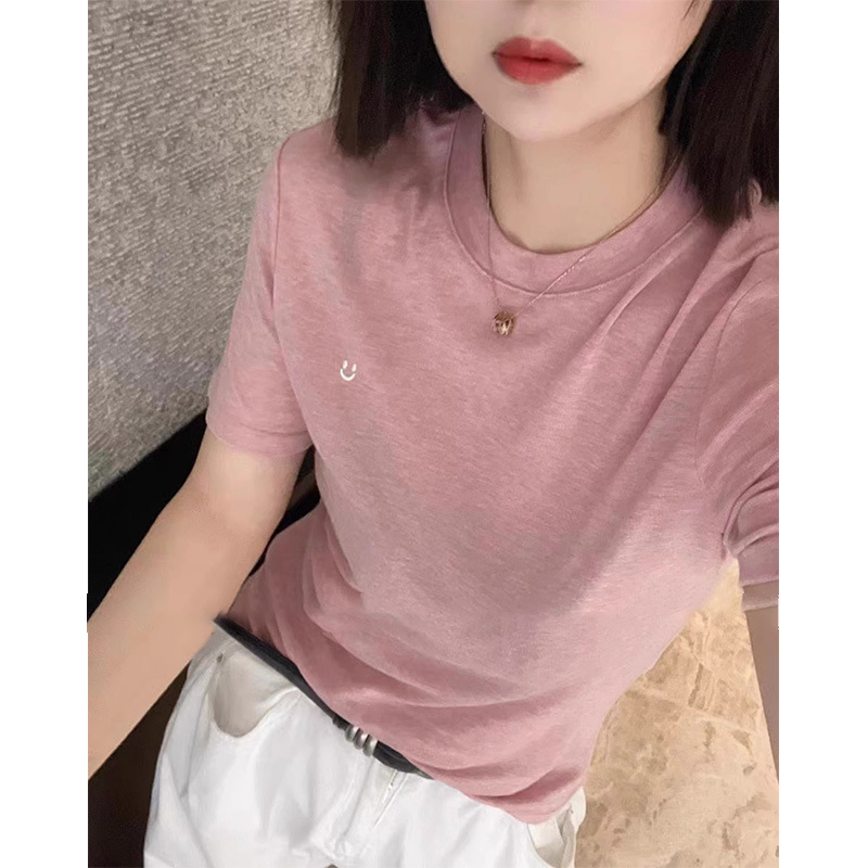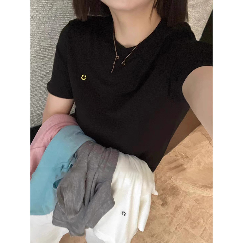 潮牌高端欧货女装2025夏季圆领笑脸天丝羊毛短袖T恤内搭气质上衣