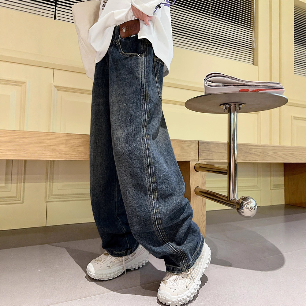 儿童装男童秋装裤子2025新款冬季牛仔裤中大童秋冬款加绒男孩
