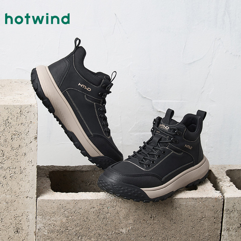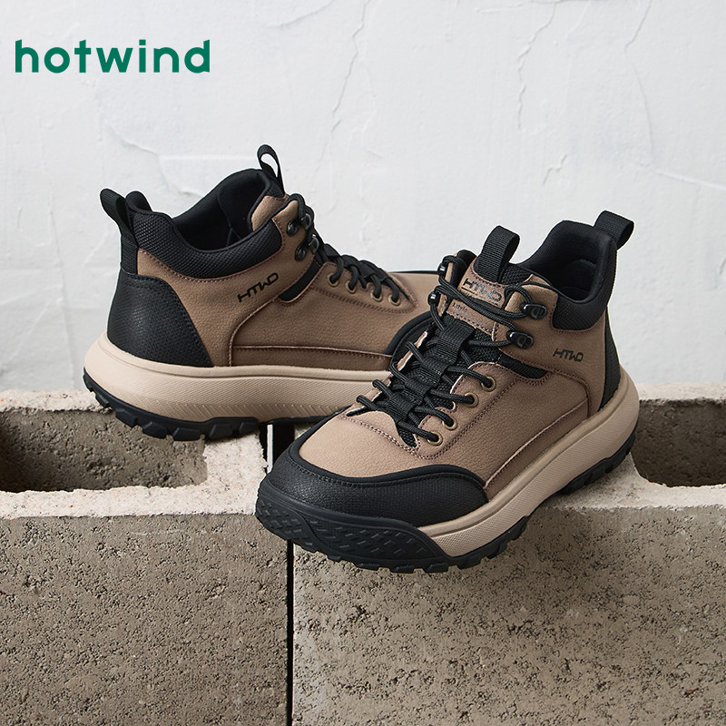 热风男鞋2025年冬季新款男士高帮休闲鞋子户外慢跑鞋运动登山鞋