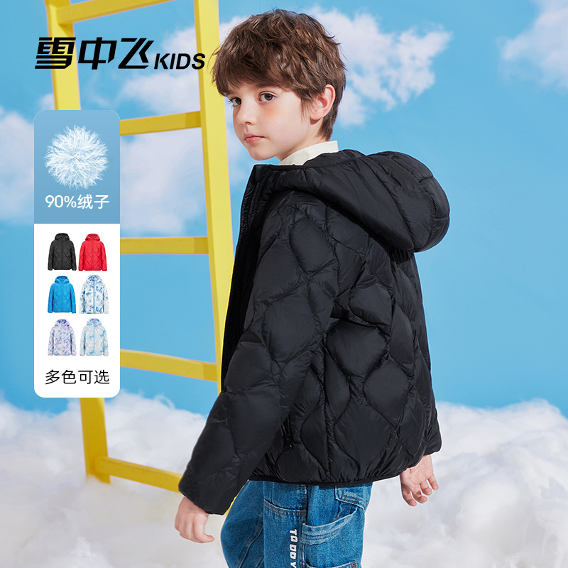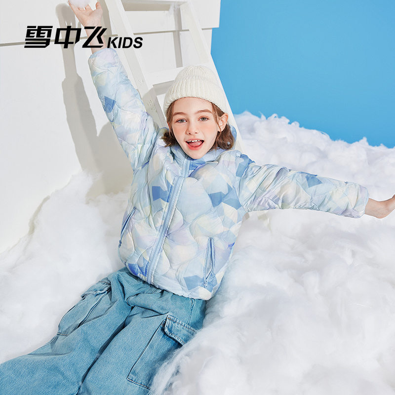 雪中飞kids童装儿童羽绒服保暖新款男童中大童印花女童轻薄羽绒服