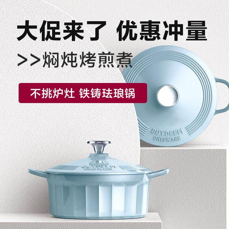 北鼎珐琅锅铸铁锅家用焖焗锅海鲜锅煲汤焖炖锅搪瓷电磁炉烤煎锅22