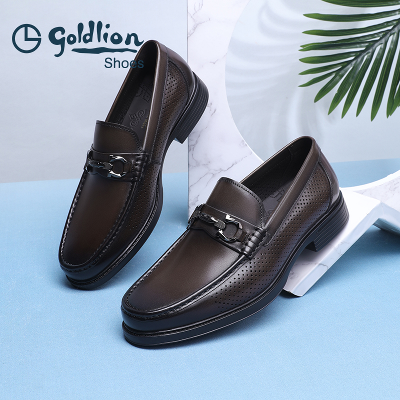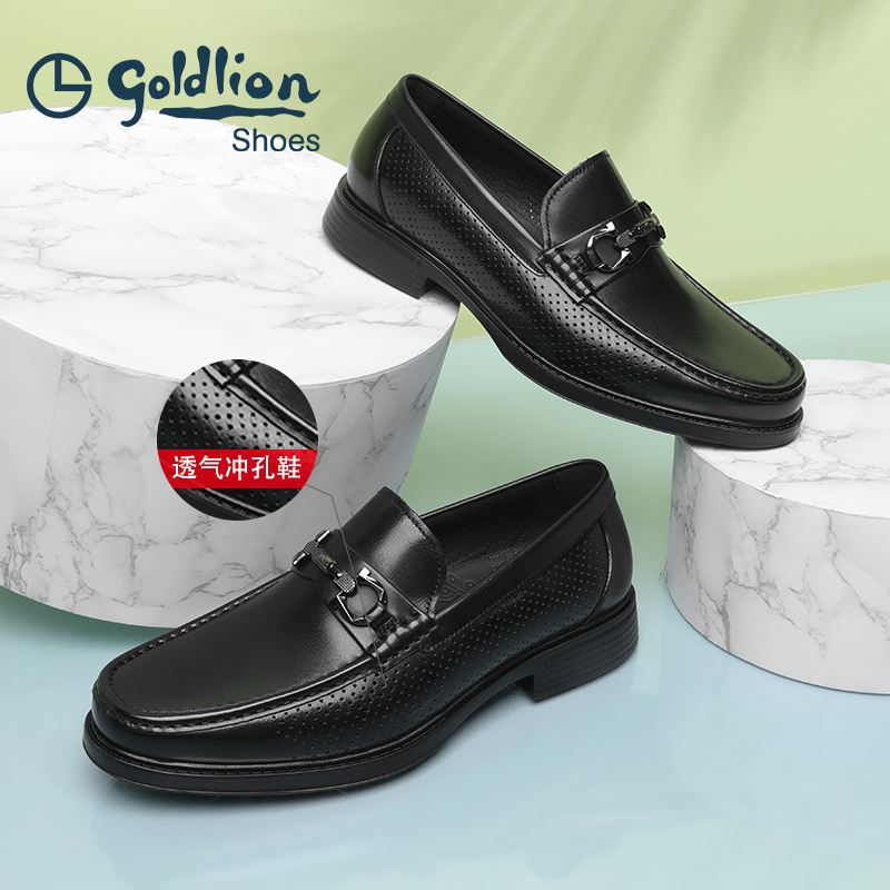 金利来男鞋皮鞋夏季新款冲孔皮鞋透气套脚皮鞋乐福鞋一脚蹬牛皮鞋
