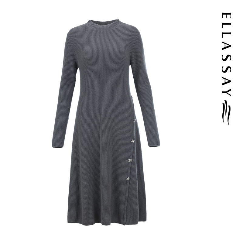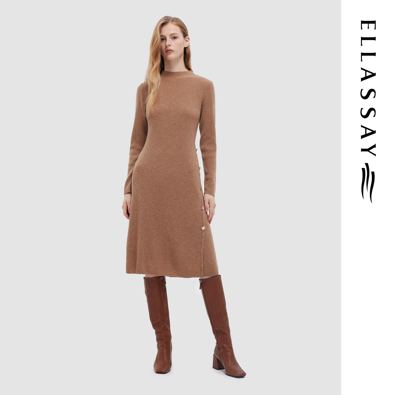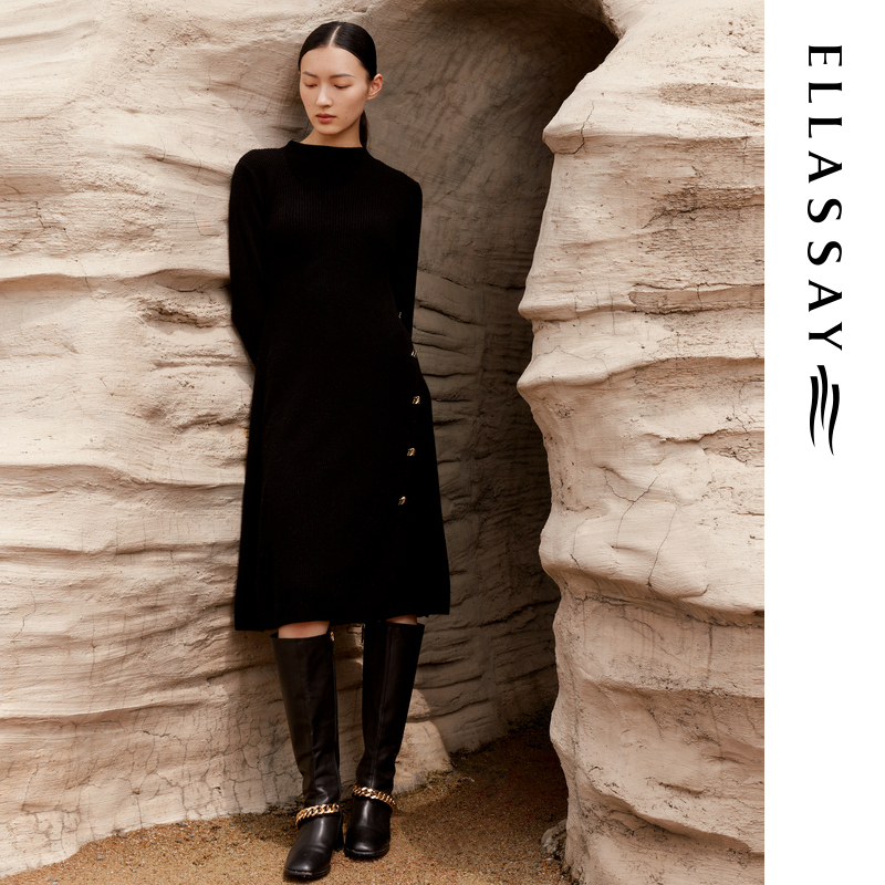 歌力思奥莱秋冬新款100%羊毛多色针织连衣裙女EWD344M031