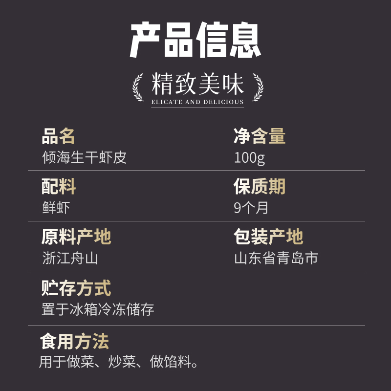 倾海之宴淡干虾皮海米干货虾米无添加盐特级宝宝儿童高钙营养辅食