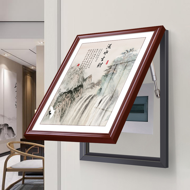 新中式电表箱装饰画2025新款免打孔山水画玄关配电箱电闸遮挡挂画