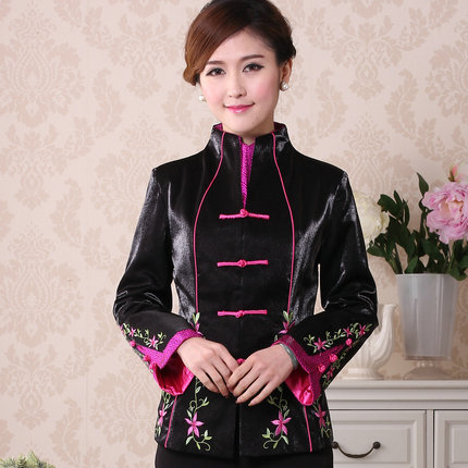 绣花双领唐装女士长袖外套春秋季女装中式妈妈装旗袍上衣 清仓ML
