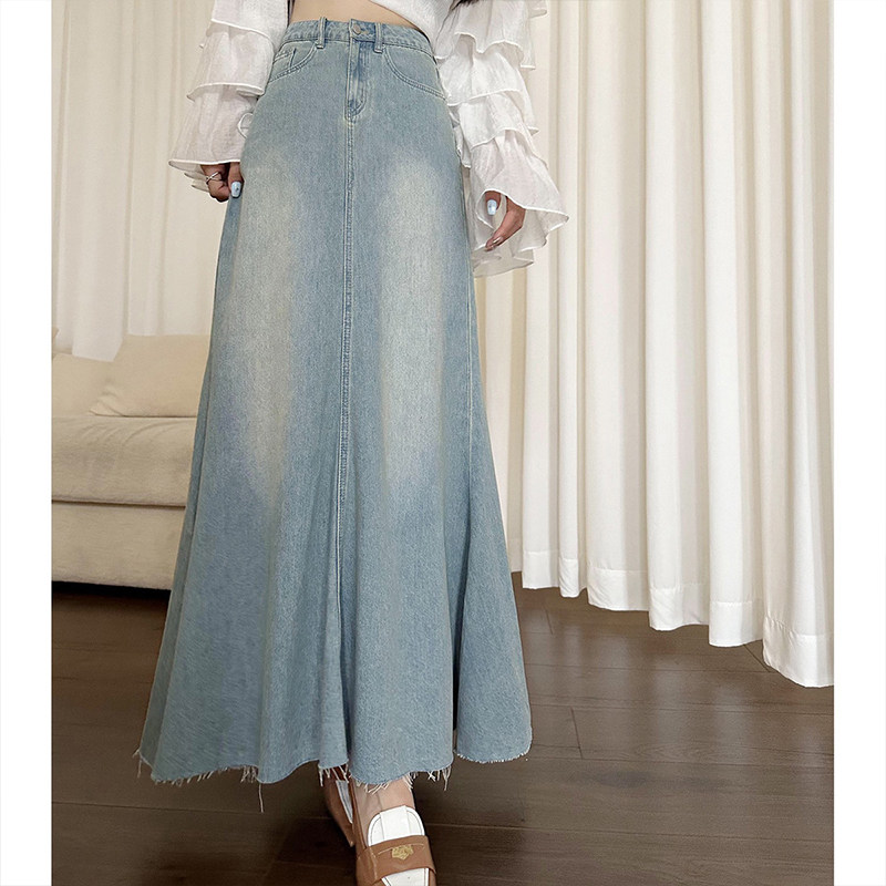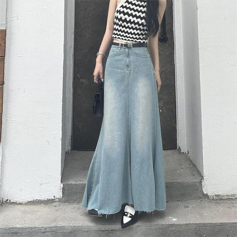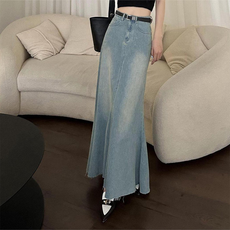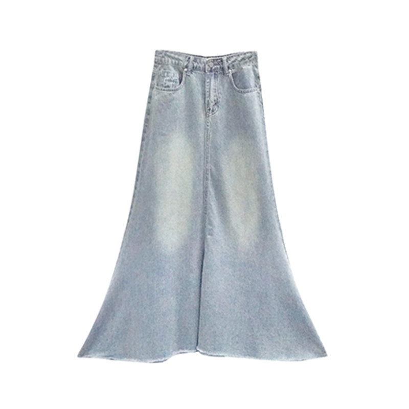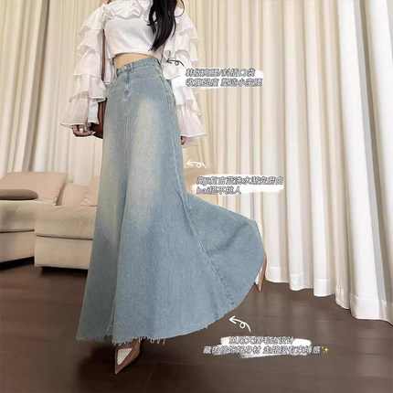 300斤胖mm大码女装复古水洗牛仔半身裙女高腰宽松显瘦A字鱼尾裙子