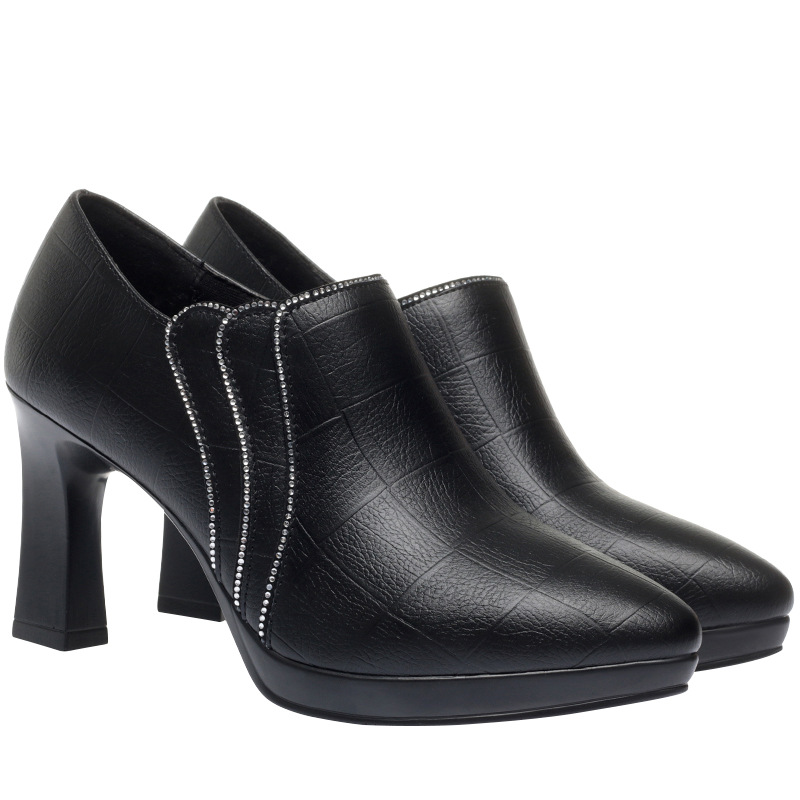高跟鞋女春秋新款软皮粗跟单鞋百搭深口女鞋尖头中跟春季皮鞋