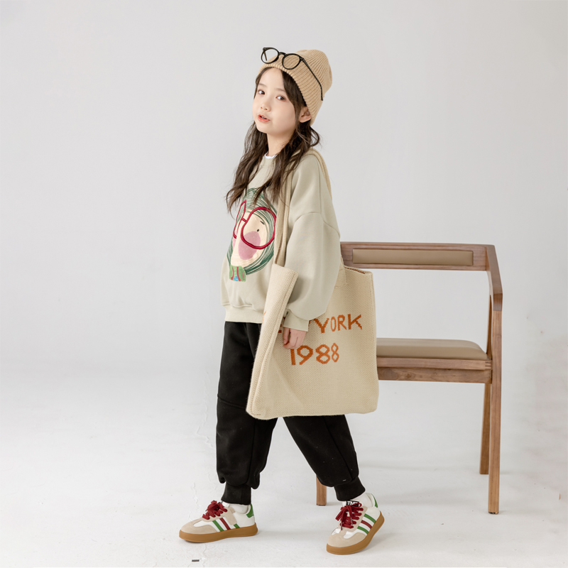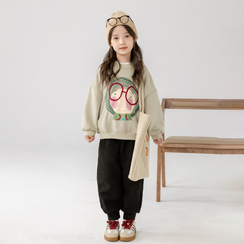 哈依鲁女童秋冬季新款时尚卡通加绒卫衣儿童中大童小学生宽松上衣