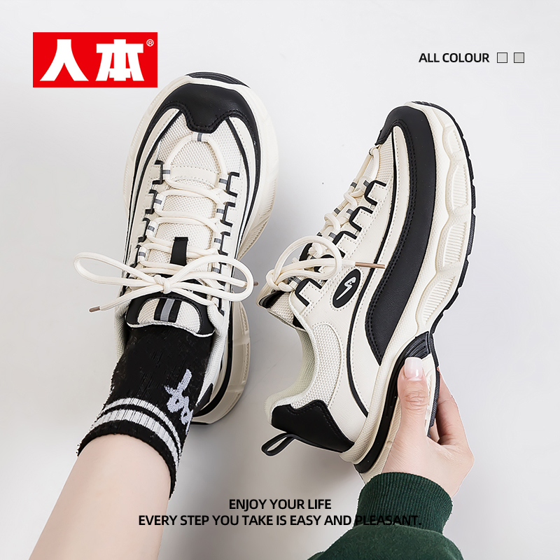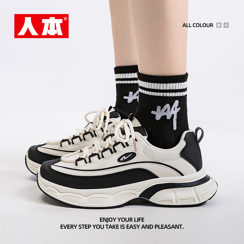 人本女鞋老爹鞋女款2024新款春季百搭增高鞋子休闲厚底运动鞋女潮
