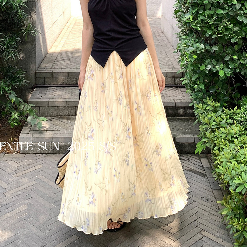 秀熙熙2025夏款优雅气质甜美碎花半身裙法式百褶大摆长裙女85217
