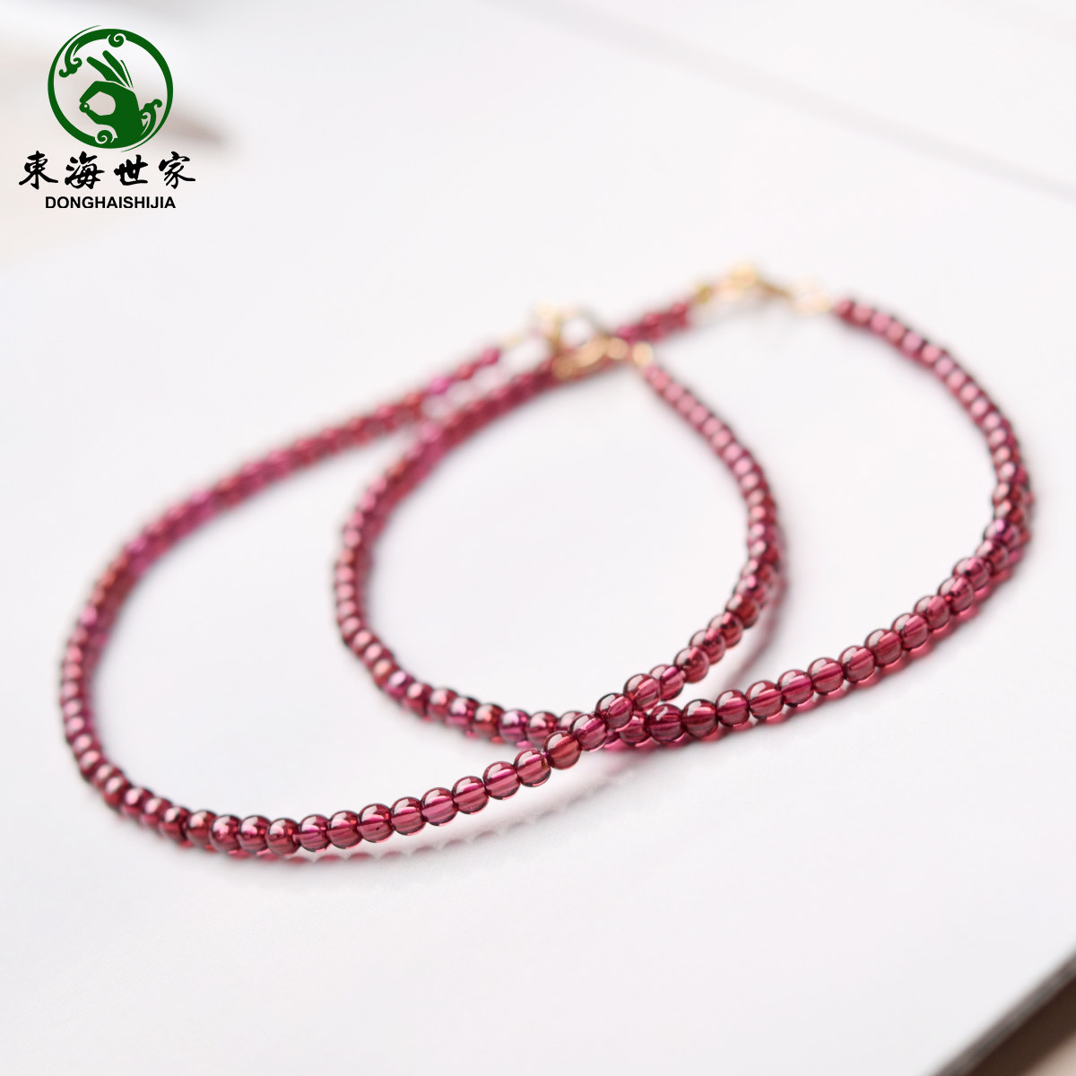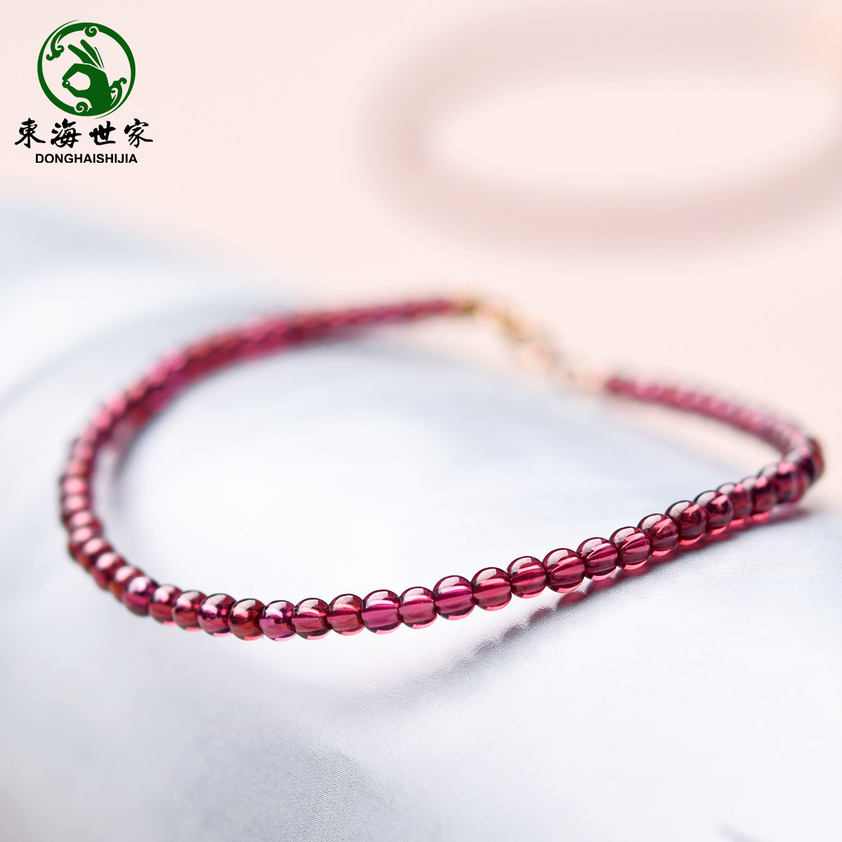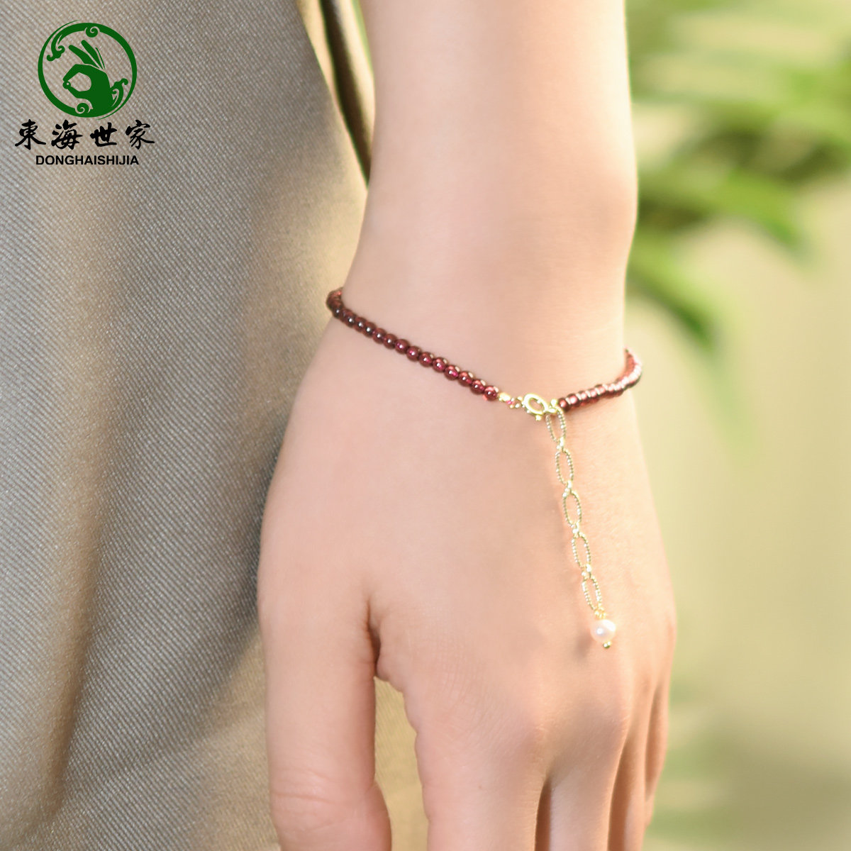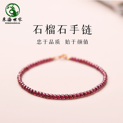 石榴石手链女 2mm极细手串酒红水晶散珠2025年新款爆款石榴石手串