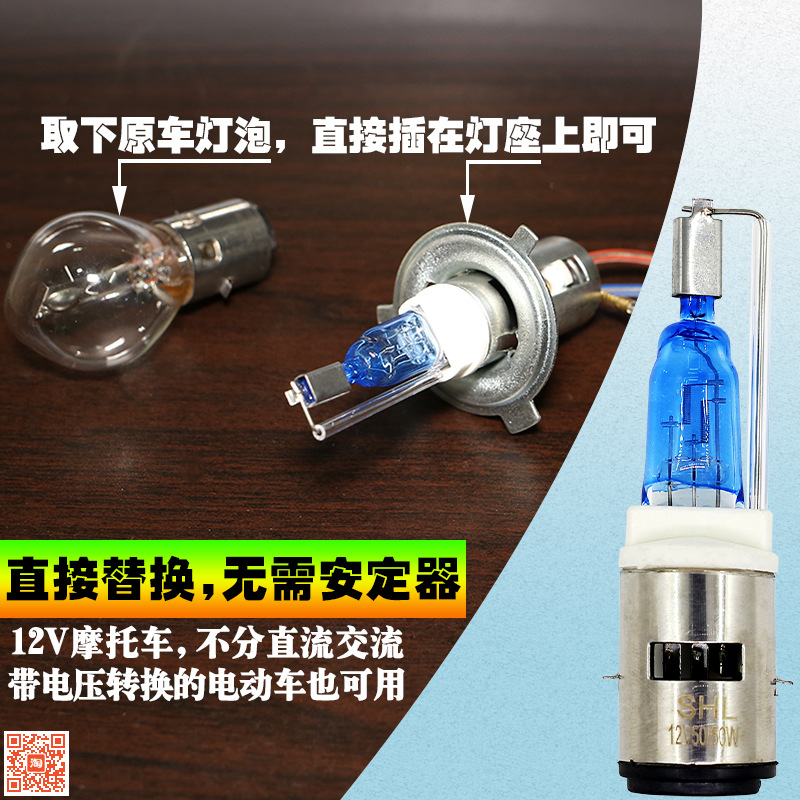 摩托车大灯泡卤素灯交流电超亮灿气大灯疝气led强光电动车氙气灯