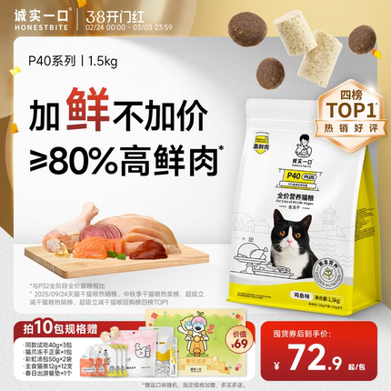 诚实一口P40鲜肉猫粮PLUS冻干双拼乳鸽肠胃成猫幼猫粮官方旗舰店
