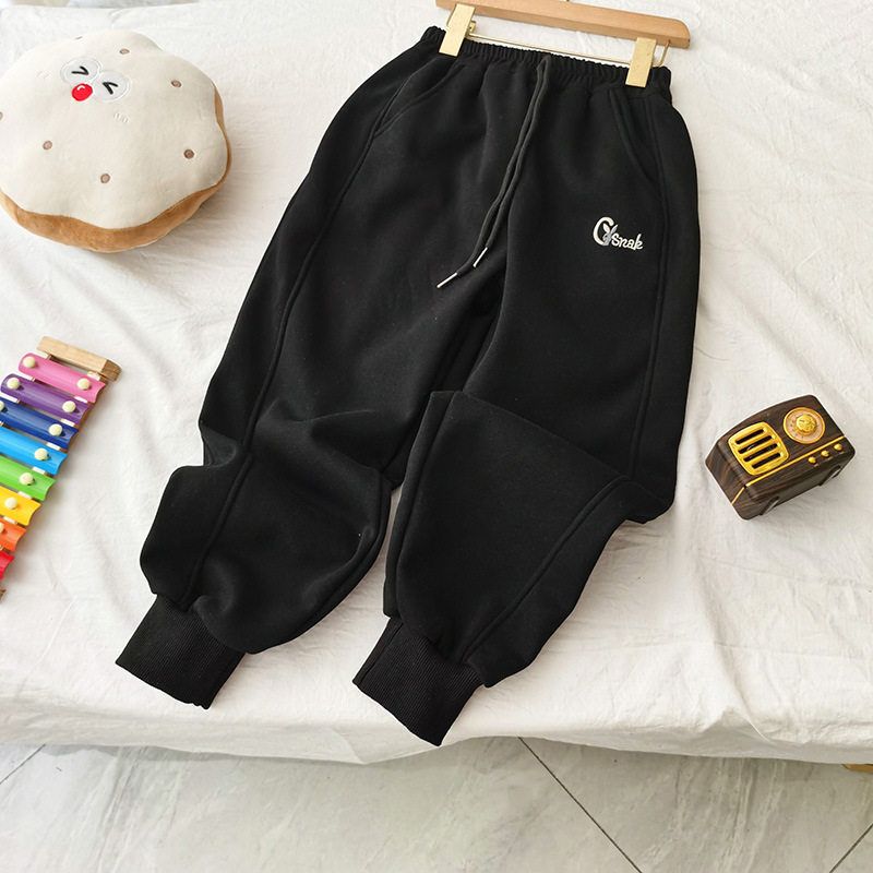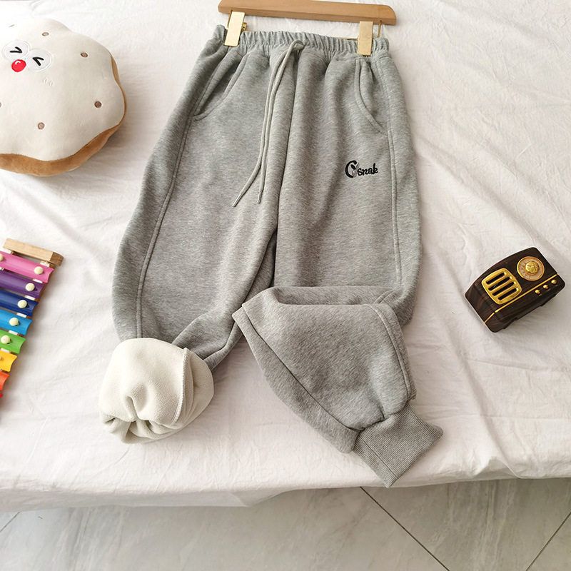 贝哆哈中大童加绒休闲裤儿童秋冬款束脚裤男童女童一体绒卫裤长裤