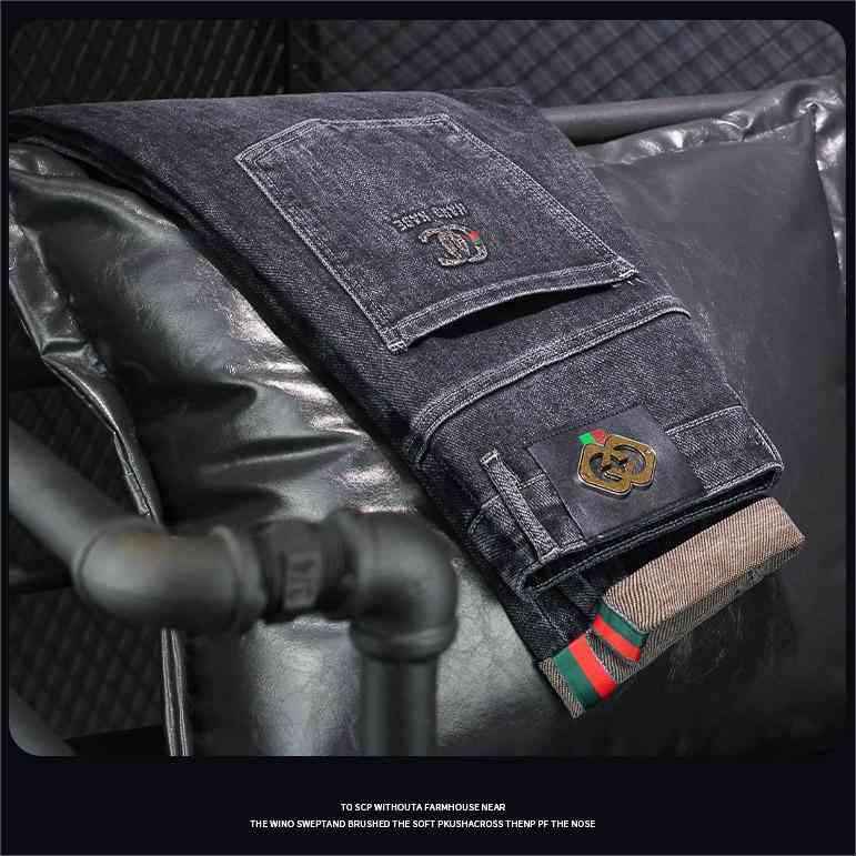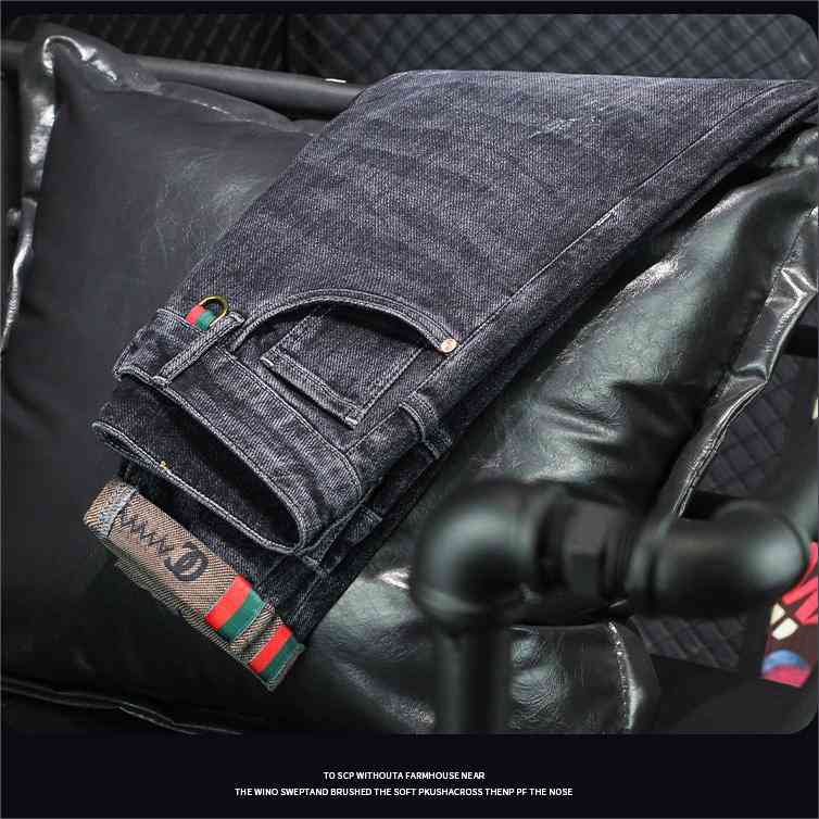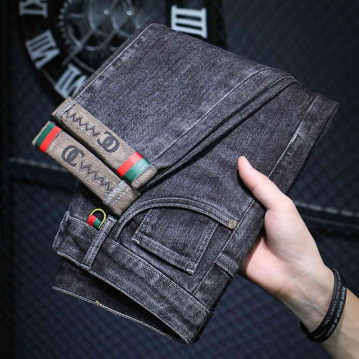 黑灰色牛仔裤男年春款高端潮牌印花百搭韩版修身小脚长裤