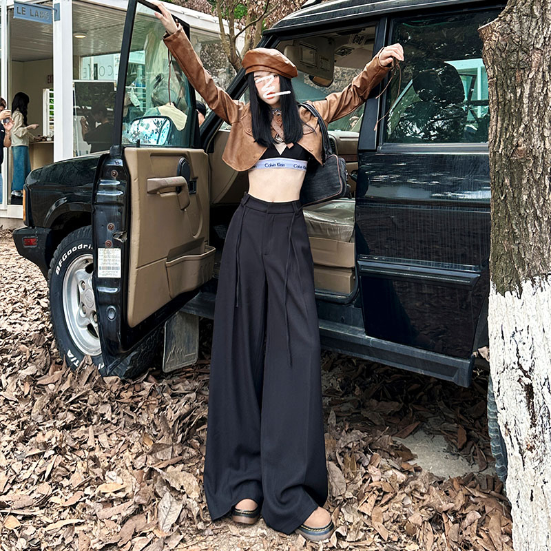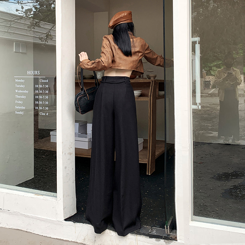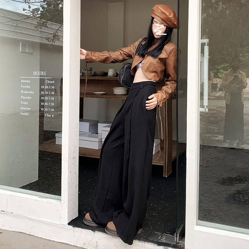 RNBN秋冬季黑色西装阔腿休闲裤女高腰宽松显瘦直筒垂感拖地长裤子