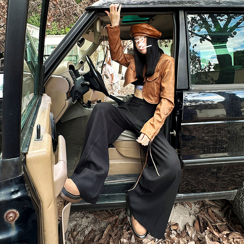 RNBN秋冬黑色高腰休闲阔腿西装裤