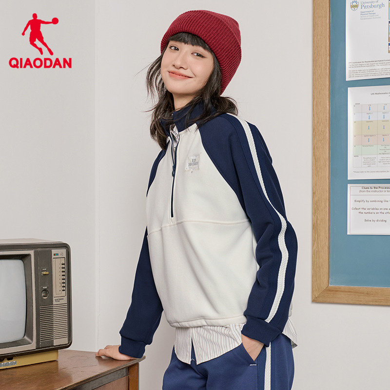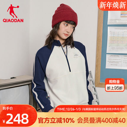 乔丹远红外保暖卫衣女士冬季新款商场同款加绒半拉链百搭套头衫