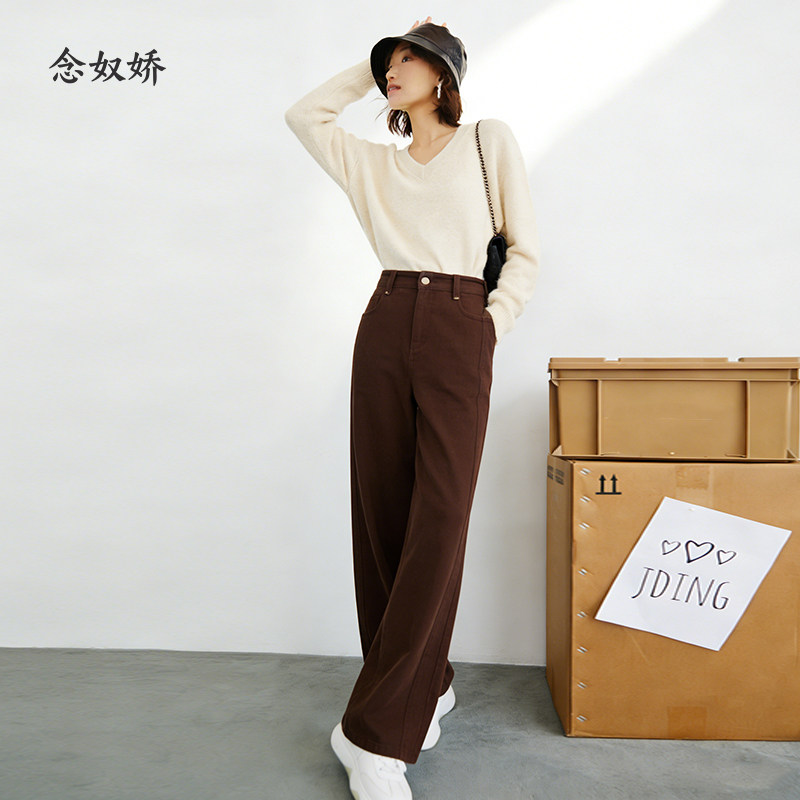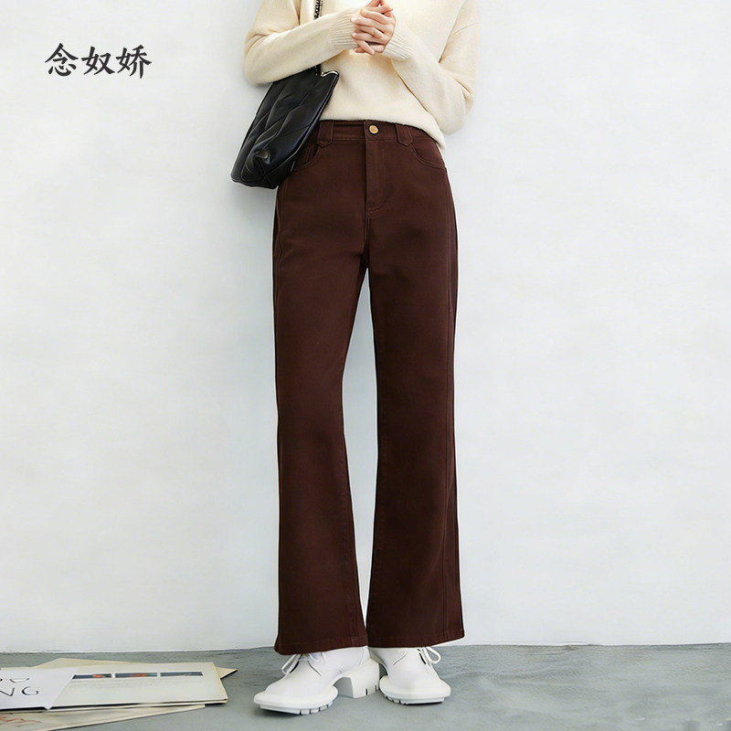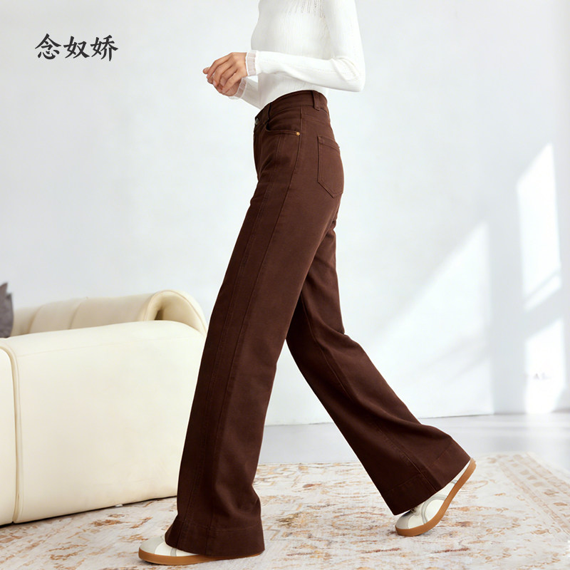 念奴娇美拉德牛仔微喇裤女秋冬高腰宽松长裤女厚款休闲裤女牛仔裤