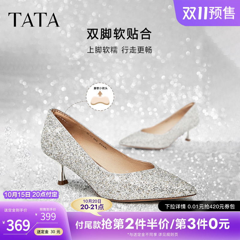 【双11预售】TATA他她婚鞋新娘鞋伴娘鞋宴会气质高跟鞋细跟单鞋女