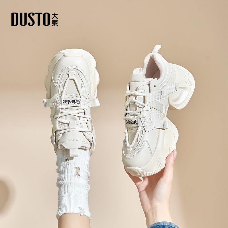 大东黑色运动鞋女款2025新款秋季百搭休闲鞋子厚底黑武士老爹鞋女