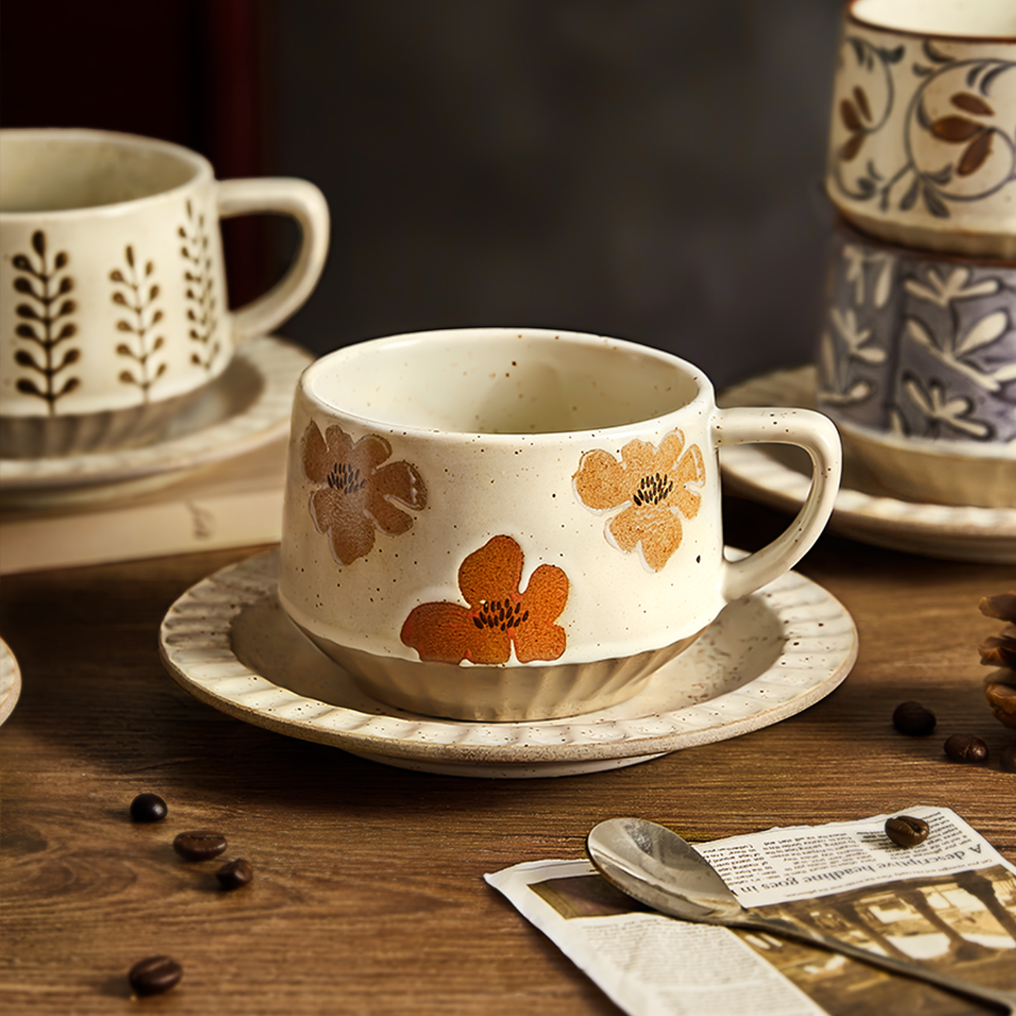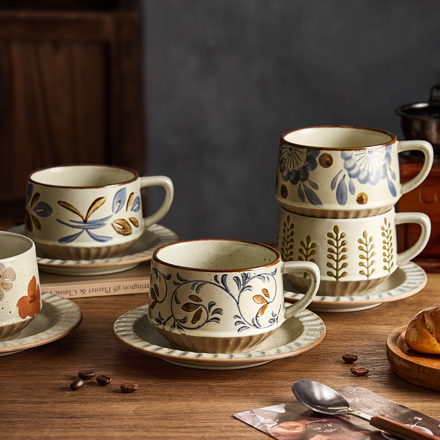 墨色复古咖啡杯碟高档精致马克杯创意粗陶高级感陶瓷拿铁拉花杯子
