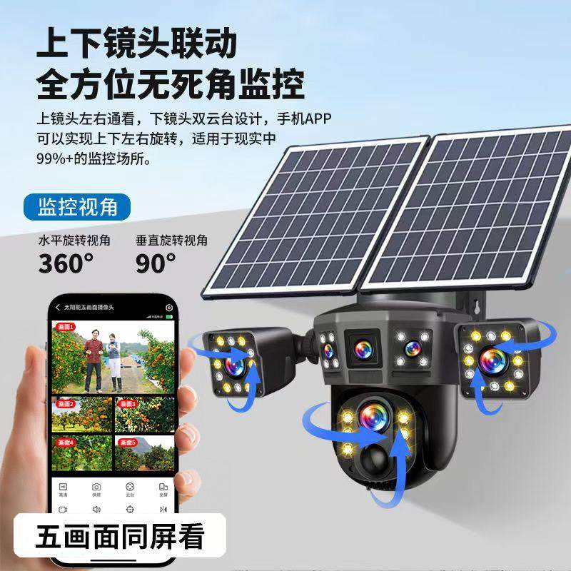 太阳能摄像头360度无死角手机远程无需网络室外夜视三画面监控器