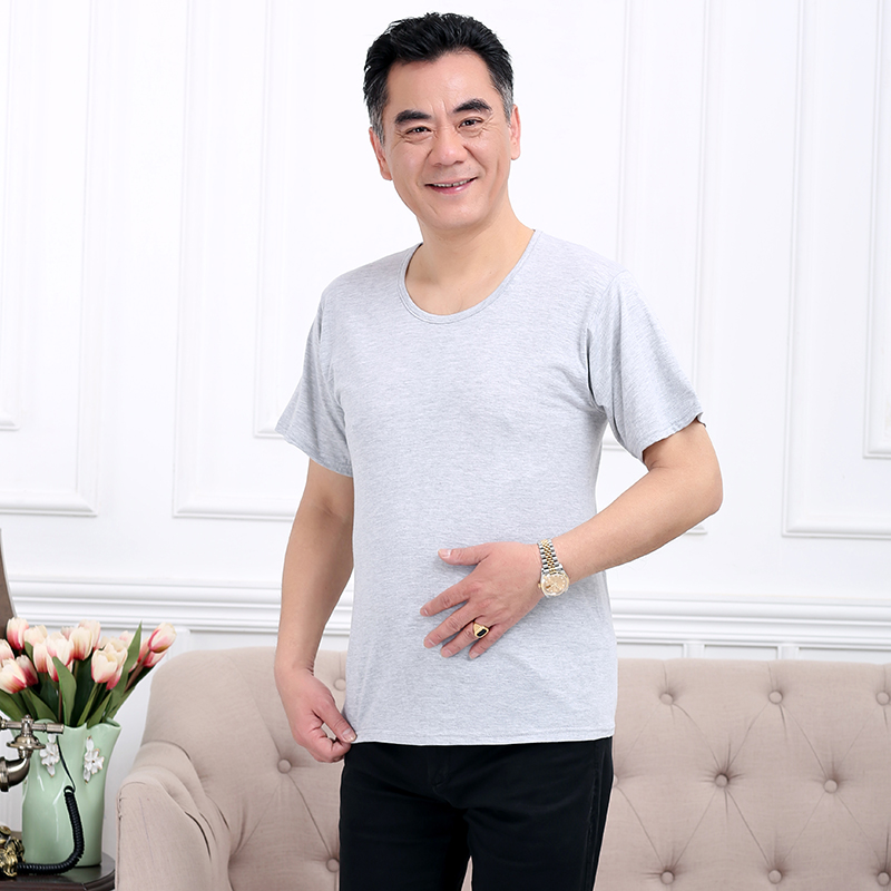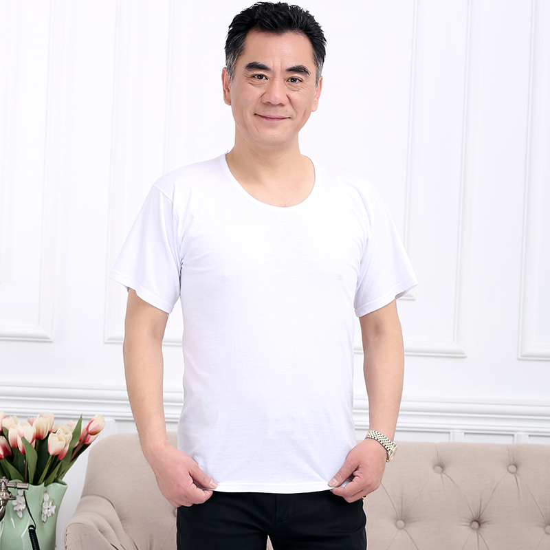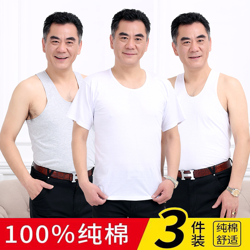 中老年人纯棉背心男士跨栏打底内衣全棉圆领汗衫夏季短袖老头衫薄