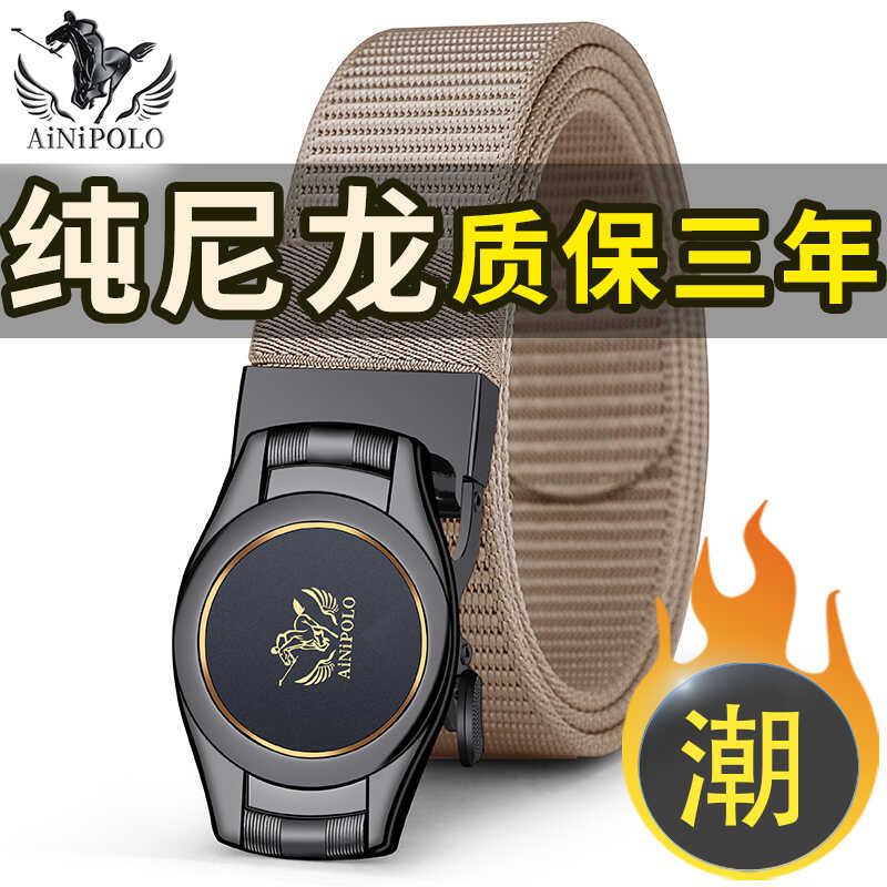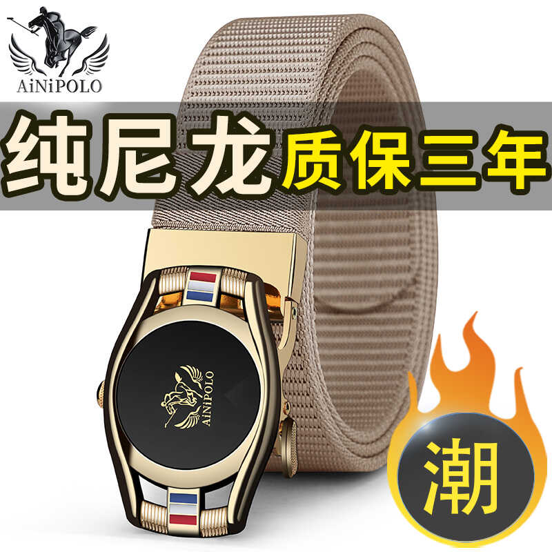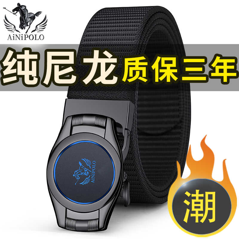 2024新款男士皮带帆布无牙自动扣腰带潮男青年时尚简约尼龙裤腰带