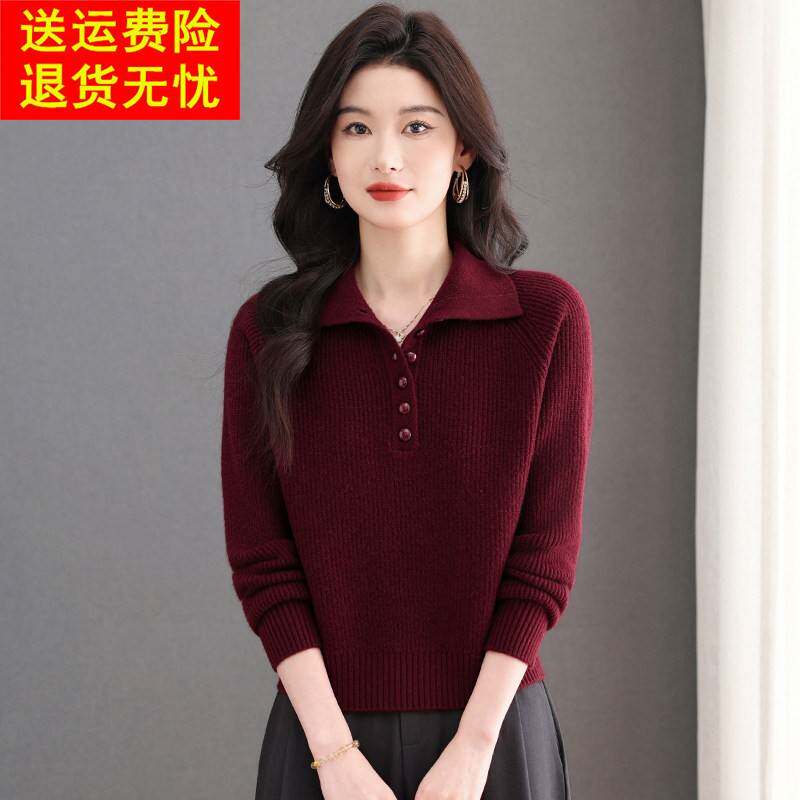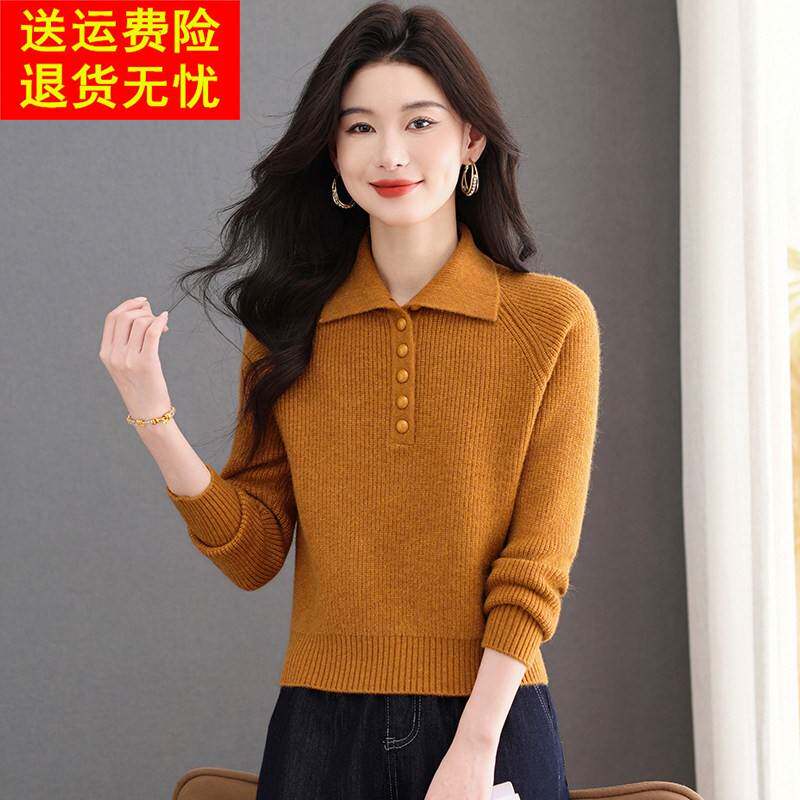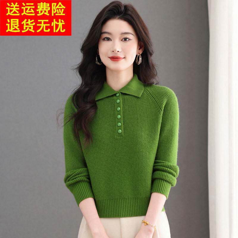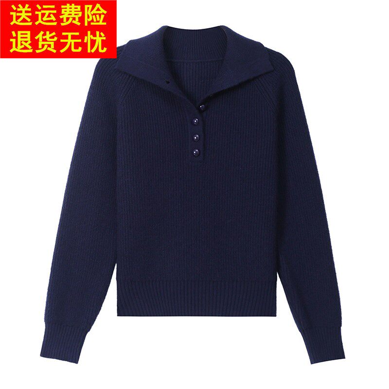 鄂尔多斯市羊毛衫女秋冬翻领针织打底衫内搭显瘦简约毛衣上衣外穿
