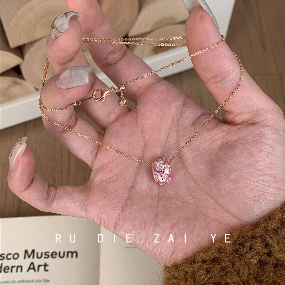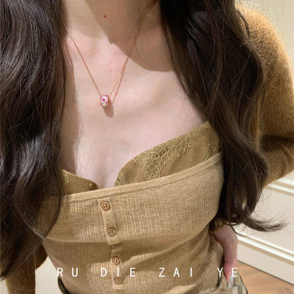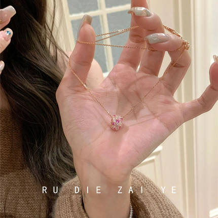 如蝶在野 「玫瑰庄园」中古玫红色锆石路路通vintage满钻锁骨链