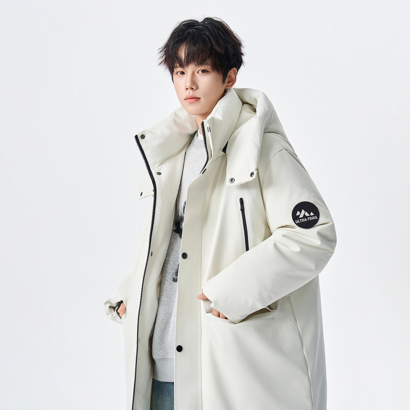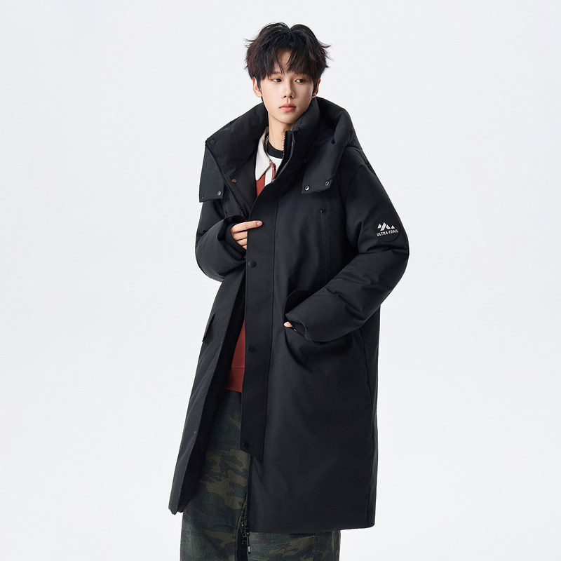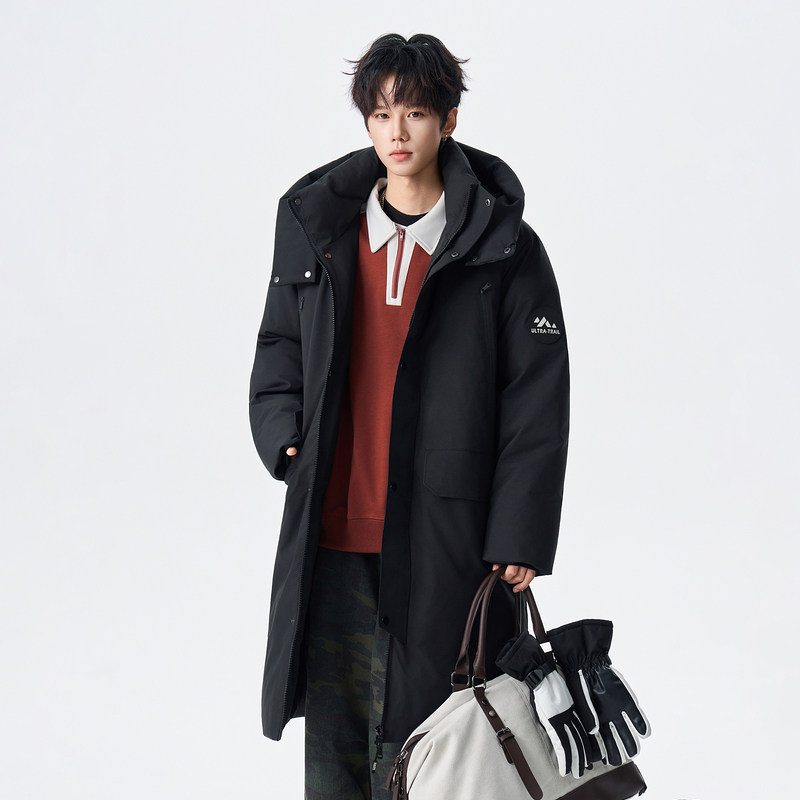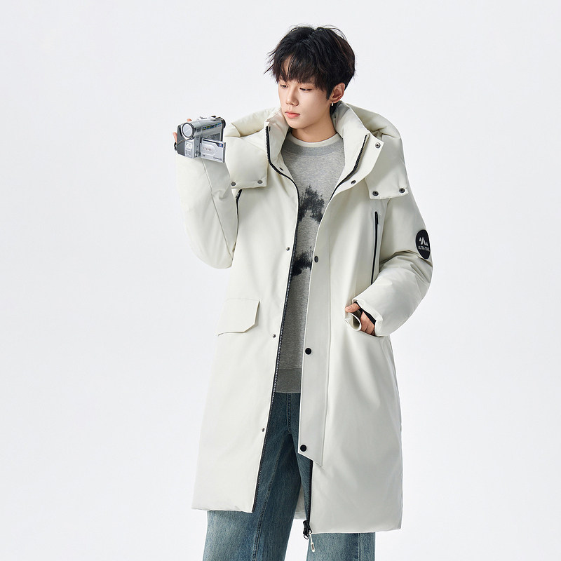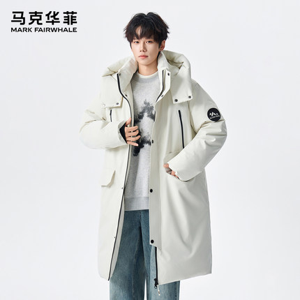 马克华菲男士中长款羽绒服冬季2025简约连帽潮流时尚百搭保暖外套