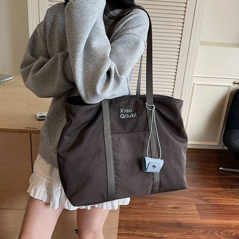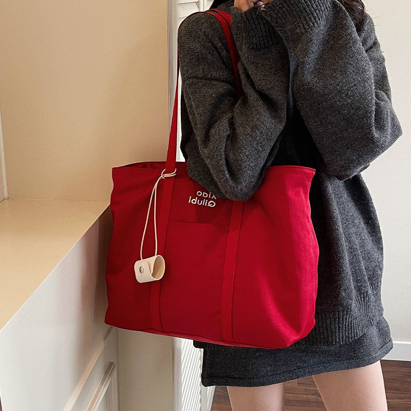 简约红色帆布包包女2025新款休闲单肩通勤包百搭轻便大容量托特包