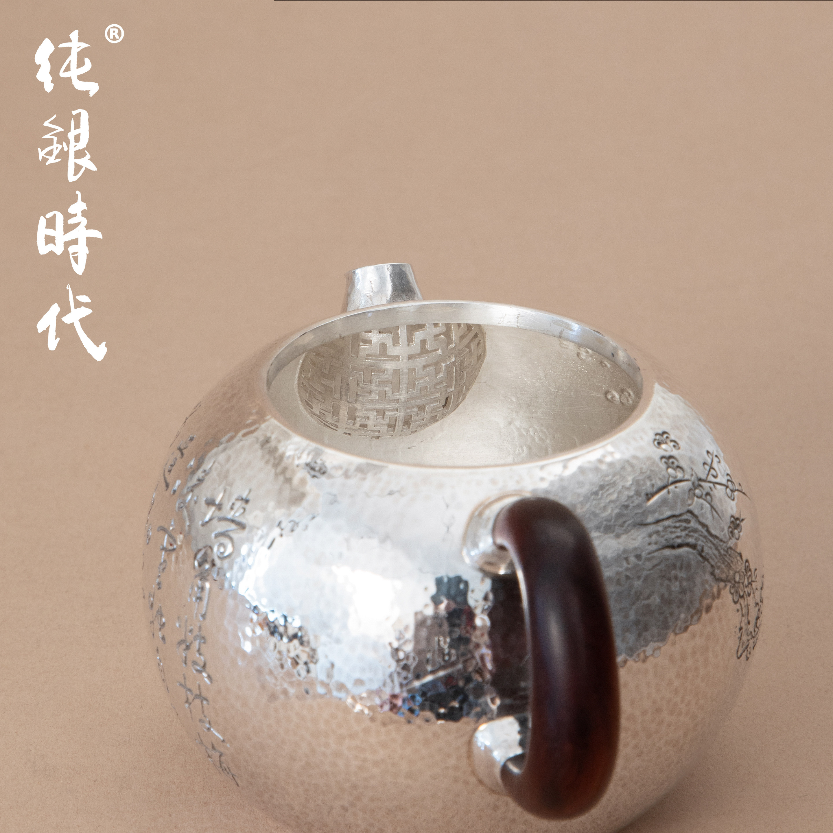 纯银时代寒梅泡茶壶纯银999西施壶防烫高端手工茶具一张银打180ml