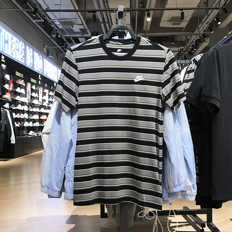 Nike耐克短袖男装2025夏季款条纹刺绣时尚休闲运动T恤 HJ0551-010