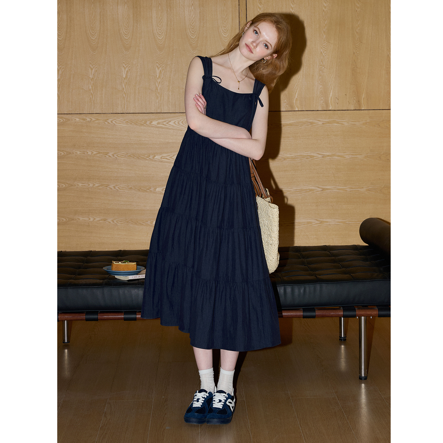 库恩玛维轻熟风系带吊带连衣裙女2025年夏季新款独特漂亮蛋糕裙子