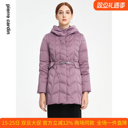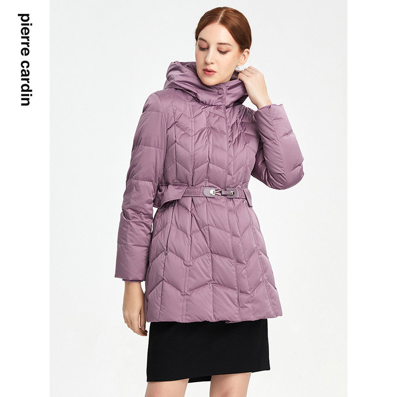皮尔卡丹女装通勤连帽羽绒服