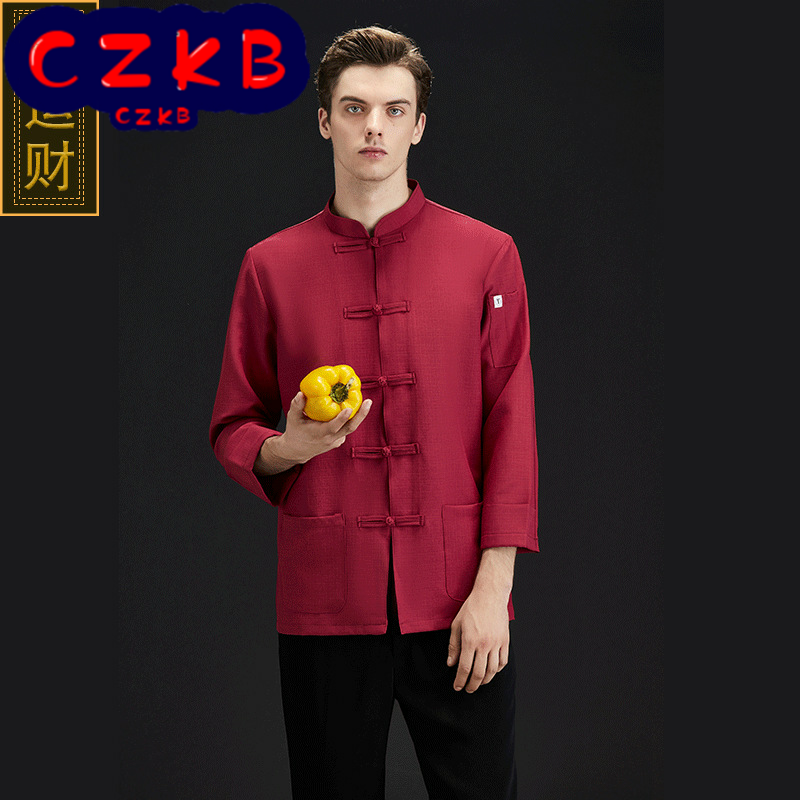 酒店厨师工作服男女长袖秋冬款饭店食堂工装餐厅厨房烘焙衣服布扣