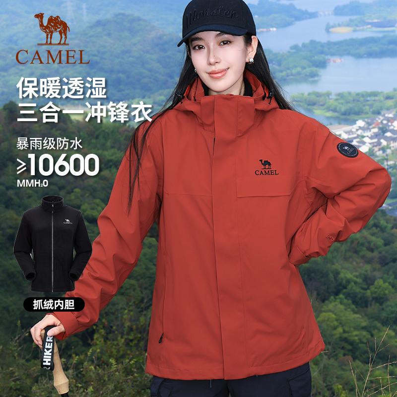 骆驼户外三合一冲锋衣男女2025新款户外防风防水夹克登山服外套男