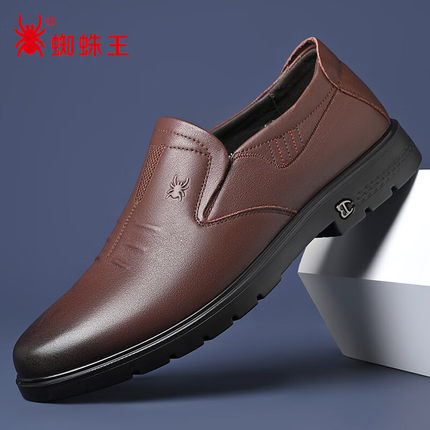 蜘蛛王男鞋春秋季新款商务休闲皮鞋男士深棕时尚软面软底爸爸鞋子