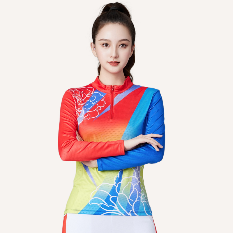 夏季长袖薄款柔力球上衣广场舞服装新款中老年团队运动服跳舞衣服