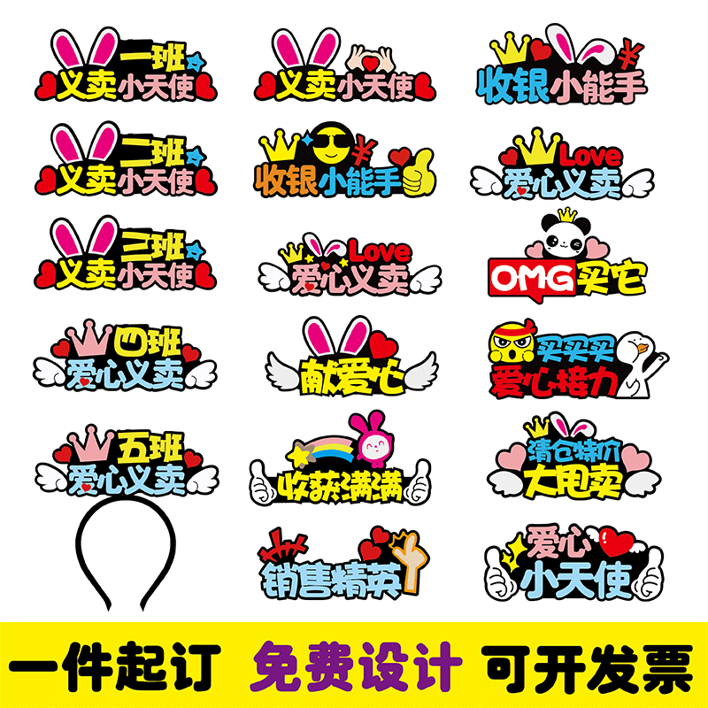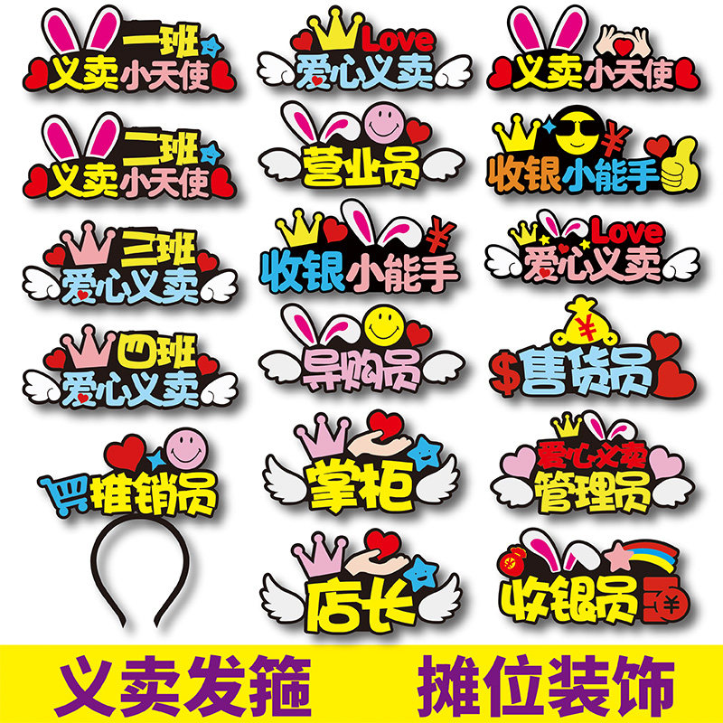 新年爱心义卖发箍定制跳蚤市场小天使收银售货头饰儿童活动装扮款