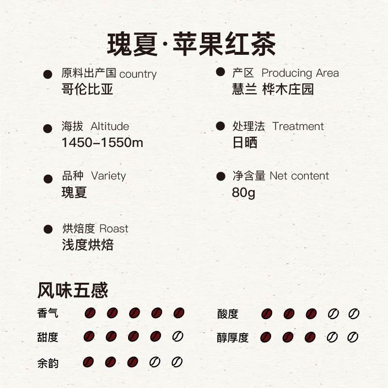 时澄 哥伦比亚瑰夏咖啡豆 苹果红茶日晒新鲜烘焙精品手冲咖啡80g