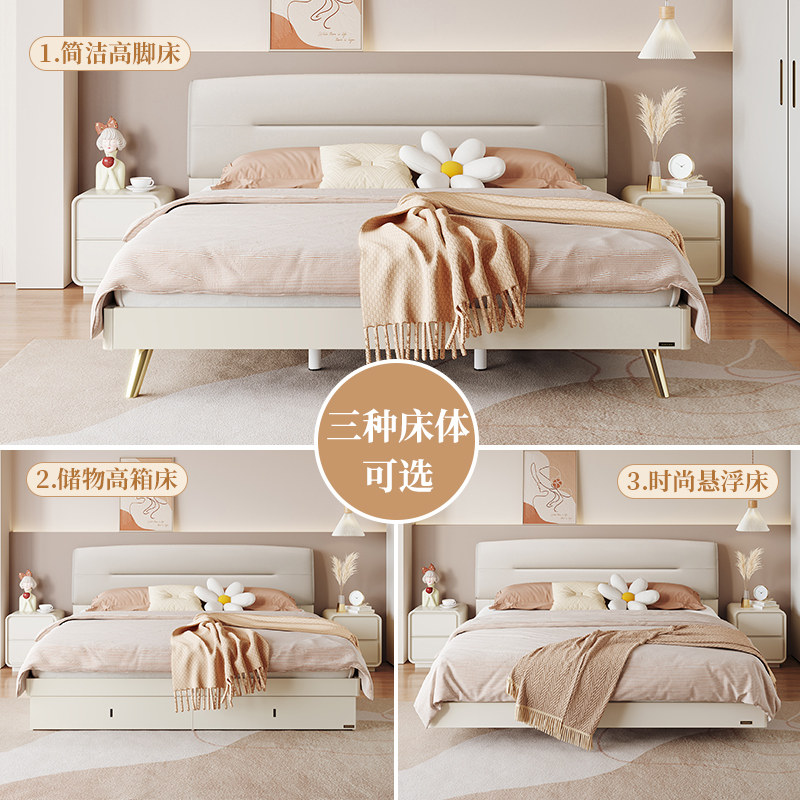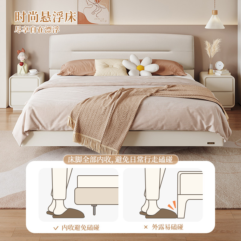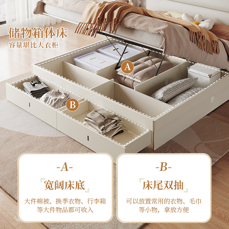 全友家居现代轻奢布艺床主卧1.8米双人软包大床高箱储物科技布床